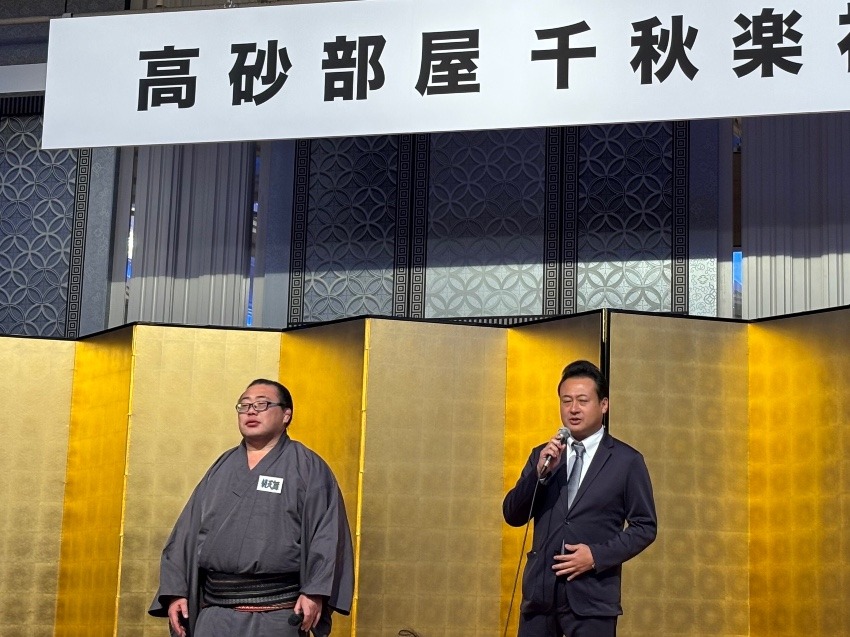 今年を締め括る九州場所が終わり、11/23(日)にホテルニューオータニ博多にて高砂部屋千秋楽祝賀会が執り行われました。