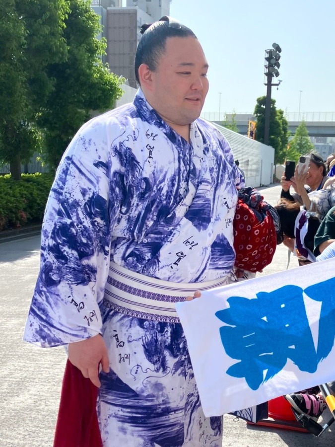 勝ち越しのかかるこの一戦、立ち合いで左に動く鳴滝に対し、瞬時に反応一気に攻めたて突き出しで4勝目、勝ち越しを決めました!