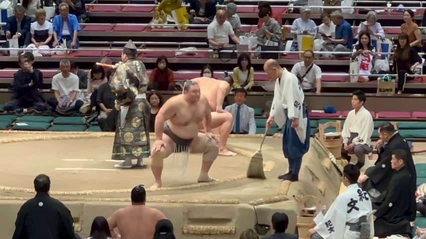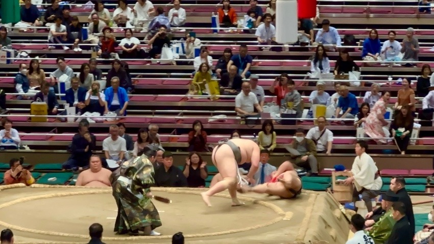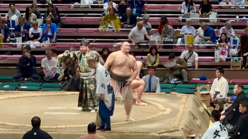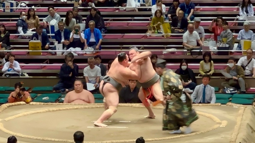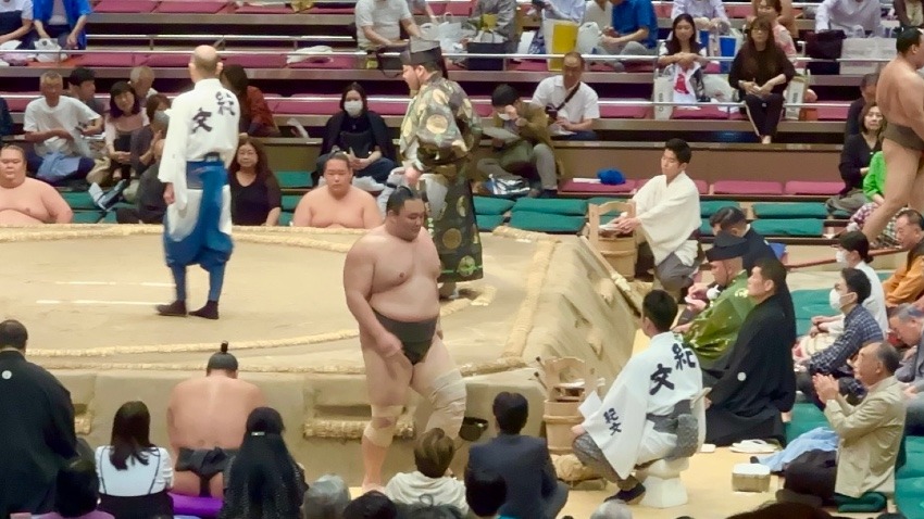 相手の激しい突きを受け、一瞬ヒヤッとする場面がありつつも、冷静に慌てることなく、最後は力強く押し倒し、6勝1敗で五月場所を締め括りました。