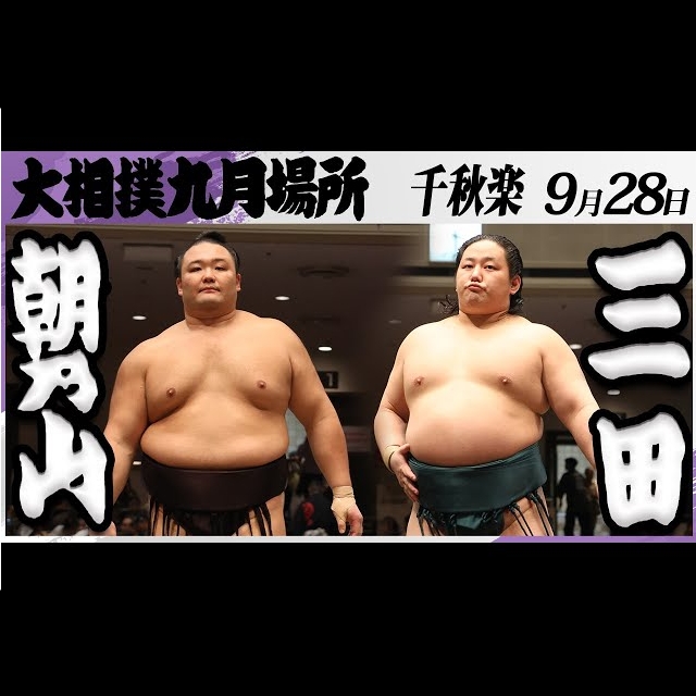 大相撲秋場所14日目(9月28日)、朝乃山は、、西十両4枚目の三田(栃木県出身・二子山部屋)を押し出しで下し、今場所を12勝3敗で締めくくりました