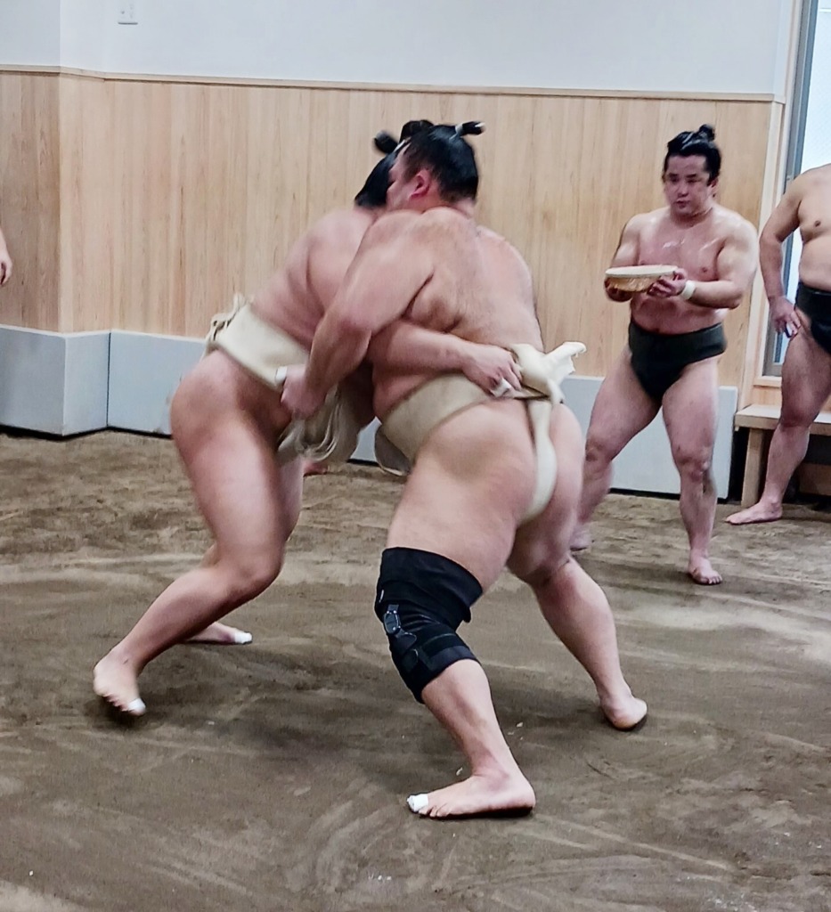 いま振り返ってみると、朝乃山の優勝や大関昇進は本人の実力と努力によるのはもちろんですが、“時流の勢い”に乗ったという側面が大きかったように思われます。出世するときには“勢い”が大切なのは言うまでもありません。ただ“勢い”は永遠に続くわけはなく、必ず止まります。そこに不祥事と大怪我という不運が重なり二度にわたる三段目までの陥落という憂き目に遭いました。二度の陥落で相撲の難しさを骨身に感じ、相撲に向き合う姿勢も格段と増してきています。相撲に向き合う姿勢が如実に表れるのが四股です。先月号で紹介した通り、四股の踏み方が明らかに変わってきました。これまでも他の力士に比べると休むことなく踏んではいたのですが、ときに数をこなす義務感のようなときもありました。それがようやく相撲の本質を目指すための四股に変わってきて、単なる“勢い”ではない、職人技としての相撲力を身につけつつあります。勢いで上がると必ず反動がありますが、相撲力という地力は体調や年齢にさほど影響を受けず積み重ねていけます。目の前の勝ち負けに一喜一憂することなく真の相撲力を身につけるための本場所の一番一番です。今場所は10勝5敗くらいでいいと思っています。腰を据えて見守っていきましょう!