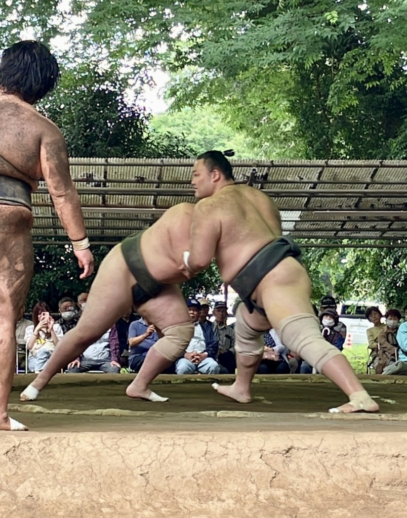 6月30日(月)に名古屋場所の番付が発表され、先場所西幕下14枚目で6勝1敗だった朝乃山は西幕下筆頭に上がり、いよいよ関取復帰が目前になってきました。5月場所を終え6月2日から部屋での稽古が再開され、13日(金)~15日(日)は茨城県下妻市の大宝八幡宮、18日(水)~22日(日)は静岡での合宿と、環境を変え緑の木々に囲まれた土俵での稽古をこなして名古屋に乗り込んでいます。